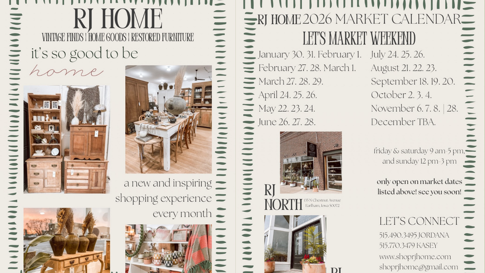 Once you try RJ Home it will be an all time favorite for home decor, furniture, gifts and more. It’s always the best weekend of the month!! The shops are beautiful, with a whole new magical feel each time. Amazing team, owners, experience, and beautiful finds in small town Iowa. A MUST TRY!!!!✨🌸 I’ve been going for years and just had the best time there at their June Market weekend! We made RJ Home the kickoff to my bachelorette party weekend itinerary!🖤
